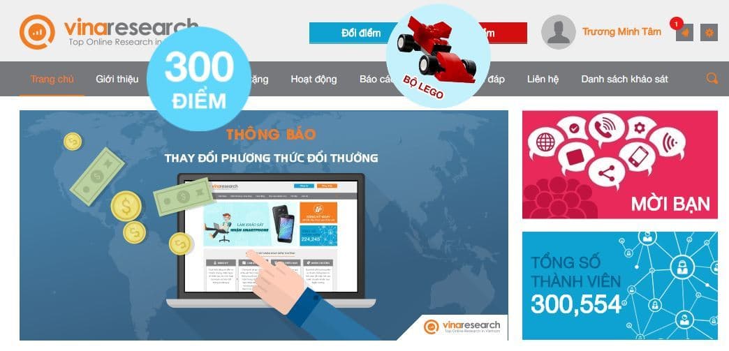 9. Trang khảo sát kiếm tiền online Vinaresearch