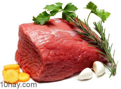 Thịt bò : nên chọn loại thịt có thớ khô ráo, màu đỏ tươi (người mắc bệnh ung thư không nên ăn thịt bò kể cả thịt lợn – thịt đỏ).