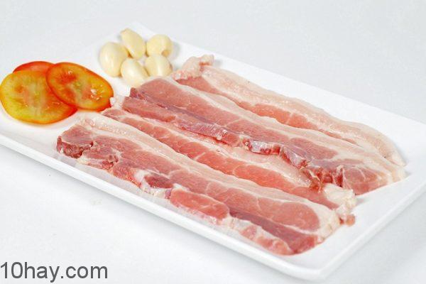 Thịt lợn : Nên chọn thịt lợn màu hồng tươi, bề mặt khô mịn, không bị nhớt, khối thịt rắn chắc, da mỏng, có độ đàn hồi cao, ấn ngón tay vào thịt tạo thành vết lõm nhưng không để lại dấu vết khi nhấc ngón tay ra. Nếu thấy mặt thịt thô ráp, ngửi không có mùi thơm của thịt, đề nghị người bán rạch một lằn dao vào thớ thịt, xem bên trong có màu tươi hồng của thịt (thịt lợn) hoặc màu đỏ tươi (thịt bò) thì thịt đó vẫn còn tươi.