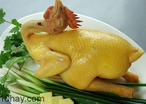 Thịt gà : Chọn con khỏe mạnh, mào đỏ tươi, da và lông mềm mại, lỗ chân lông nhỏ, hậu môn không ướt và đỏ, đùi to, chắc, chân nhỏ. Nên chọn gà mái tơ. Với gà công nghiệp, nên chọn có trọng lượng từ 2kg trở lên, nếu mua gà làm sẵn nên chọn con có màu vàng nhạt bởi vàng đậm có thể do người bán ngâm vào nước có pha bột sắt.