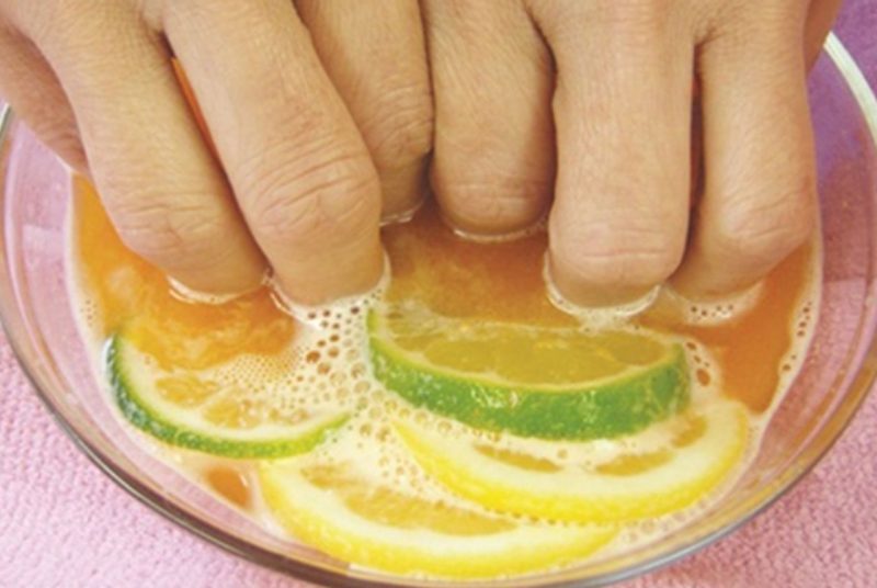 Nếu móng tay, móng chân vàng hoặc bị bẩn, bạn có thể dùng chanh để làm sạch nhanh chóng. Quả chanh có chứa axit và mùi thơm dễ chịu, bạn sẽ có cảm giác thư giãn khi dùng nó để rửa sạch tay, chân. Khi dùng chanh pha nước chấm, bạn hãy tận dụng ngay phần bỏ đi để làm sạch vùng móng tay, móng chân. Bạn có thể dùng chanh tươi, dầu oliu hoặc mật ong để giúp móng tay khỏe đẹp.