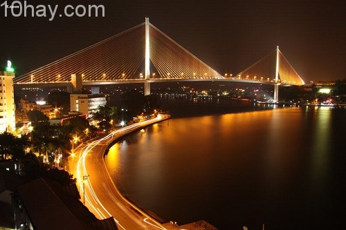 Không phải mình ưu ái Đà Nẵng mà 3 trong số 10 cây cầu mình viết đều của thành phố này, nhưng quả thật, đây là những cây cầu khá độc đáo, đẹp và lạ mắt, không thể không nói đến. Bạn nào có dịp đến thăm Đà Nẵng thì hãy đến khám phá cầu sông Hàn rồi về. Về đêm, cầu là sự lựa chọn tuyệt vời cho du khách đến tham quan, hóng mát và chờ đợi khoảnh khắc cầu quay mỗi ngày. Khoảng 1h đêm, phần giữa thân cầu tách làm đôi, dầm cầu quay ngang 90o quanh trục và sau đó nằm dọc theo dòng chảy của sông Hàn để mở đường cho tàu lớn đi qua. Khoảng 4 giờ sau, cầu sẽ quay lại như cũ để phục vụ giao thông trên cầu. Đây chính là chiếc cầu quay dây văng đầu tiên và duy nhất của nước ta. Chiếc cầu được xây dựng là nhờ sự đóng góp của người dân Đà Nẵng, do kỹ sư và công nhân Việt Nam tự thiết kế, là niềm vui và niềm tự hào của người dân nơi đây đồng thời góp phần vào sự phát triển thịnh vượng của đất nước.