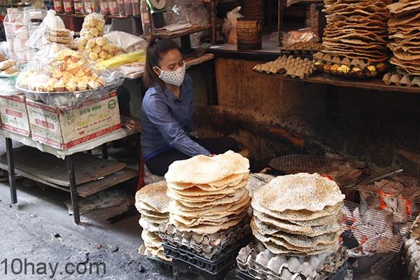 Những chiếc bánh vàng ươm màu nghệ, thơm lừng trứng gà và nở xòe như bông hoa mai được bày bán trên nia tạo không khí nhộn nhịp ngày Tết. Nhưng món bánh thuẫn này vẫn được đổ khuôn nướng mỗi ngày với số lượng ít hơn ngày Tết tại chợ Bà Hoa làm món quà bạn đem tặng bạn bè, người thân hay làm quả bánh cưới rất đẹp mắt, hấp dẫn.