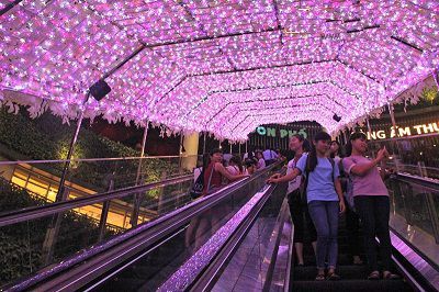 Mới đi vào hoạt động đầu năm 2016, Aeon Mall Long Biên luôn gây sốt với những cách trang trí lộng lẫy, đặc biệt là vào các dịp lễ Tết. Trung thu năm nay, tại Aeon Mall, ban quản lý “không tiếc” bỏ ra hàng nghìn chiếc đèn lồng để tạo một lối đi ngập tràn ánh đèn.