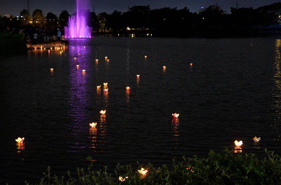 Mỗi mùa Trung thu đến, tại hồ Bán Nguyệt hàng ngàn chiếc đèn hoa đăng được thả xuống hồ mang lại không gian lung linh, thu hút nhiều người đến xem. Không chỉ thế, xung quanh hồ là những chiếc đèn lồng được thắp sáng đèn làm cho hồ trở nên đẹp lạ thường.