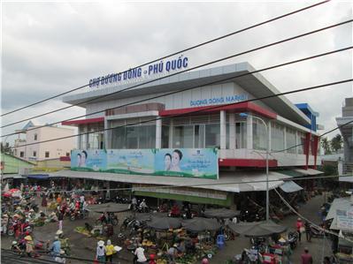 Nằm ngay trung tâm thị trấn Dương Đông, bên bờ sông Dương Đông nên chợ Đông Dương bày bán khá nhiều các loại hải sản tươi sống được đánh bắt hằng ngày. Dân làng chài họp chợ từ sáng sớm khoảng 4 giờ tấp nập mua bán hàng hóa trao đổi các loại hàng hóa như hải sản tươi, khô, sản vật địa phương tạo khung cảnh chen lấn đông vui.