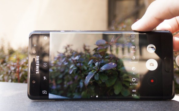 Tiếp nối các thế hệ Galaxy Note trước, Note 7 vẫn rất đề cao tính năng chụp hình bên cạnh thế mạnh lớn nhất là S Pen. Người dùng chỉ cần nháy đúp nút Home là có thể mở camera ở mọi tình huống. Tốc độ phản hồi nhanh và chính xác cho phép máy chỉ mất khoảng 3 giây là có thể chụp xong được bức hình đầu tiên. Tuy không có phím chụp riêng biệt giống như các sản phẩm của sony nhưng người dùng có thể thay thế bằng phím tăng giảm âm lượng hoặc cử chỉ đưa lòng bàn tay hướng về camera cũng như sử dụng cảm biến nhịp tim ở phía sau máy. SamSung Note 7 có camera sau sở hữu độ phân giải 12 mpx, khẩu độ f/1.7 với khả năng chống rung quang học. So với Galaxy Note 5 của năm ngoái, Note 7 của năm nay sở hữu độ phân giải thấp hơn nhưng khẩu độ lớn hơn nhiều(chỉ số khẩu độ càng nhỏ cho ảnh càng đẹp). Máy vẫn được trang bị tính năng lấy nét theo pha. Điểm khác biệt lớn nhất của Note 7 và Note 5 có lẽ là khả năng chụp hình dưới nước.