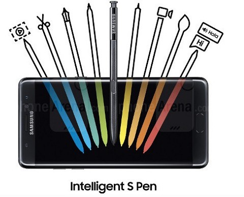 Bút S Pen được thu nhỏ đầu bút xuống cỡ 0,7mm, có màu sắc bắt mắt hơn và hỗ trợ tới 4000 điểm áp lực. Một số tính năng mới được tích hợp vào bút bao gồm: phóng to màn hình, chạm trực tiếp vào cụm từ để chỉnh sửa,…Cải tiến đáng chú ý nhất của chiếc bút S Pen này là khả năng chống thấm nước. Thậm chí, bạn có thể dùng bút S Pen để phác thảo trên màn hình Galaxy Note 7 dưới môi trường nước mà không sợ bất kỳ hỏng hóc nào cho phụ kiện này. Lưu ý rằng bút cảm ứng của Galaxy Note 5 không làm được điều này.