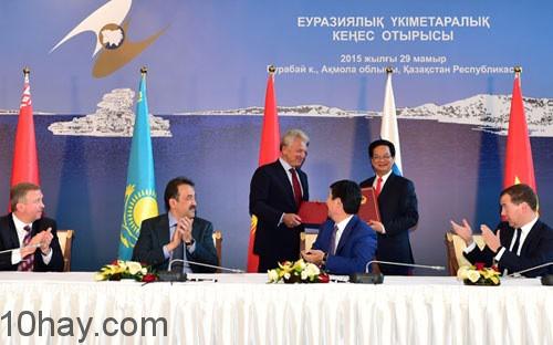 Hiệp định thương mại tự do Việt Nam – Liên minh Kinh tế Á Âu (EAEU – bao gồm các nước: Liên bang Nga, Cộng hòa Belarus, Cộng hòa Kazakhstan, Cộng hòa Armenia và Cộng hòa Kyrgyzstan) được ký kết ngày 29/5/2015.