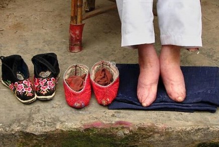 Hủ tục kinh dị trên thế giới này hiện đã không còn tồn tại, nhưng vẫn còn một số nhân chứng sống, hủ tục kinh dị này xuất hiện ở Trung Quốc và từng gây xôn xao dư luận. Hủ tục này bắt nguồn từ quan điểm về vẻ đẹp của người phụ nữ phong kiến Trung Quốc, một người phụ nữ được cho là đẹp khi có bàn chân thon nhỏ gọi là gót sen, họ đi không vững tạo nên cảm giác dáng đi thanh thoát, nhẹ nhàng hơn, rất được đàn ông giàu có xem trọng và ưa thích. Từ nhỏ, các bé gái đã dùng những băng vải bó chân cho con, xương trẻ con chưa phát triển hết nên rất dễ uốn, từ từ xương mu bàn chân sẽ cong dần lên như gập lại, tạo thành đôi bàn chân nhỏ, để có thể đi vừa những chiếc hài vải bé tẹo. Có đôi lúc băng vải thường xuyên khiến chân bị sưng, nhiễm trùng và hoại tử dần.