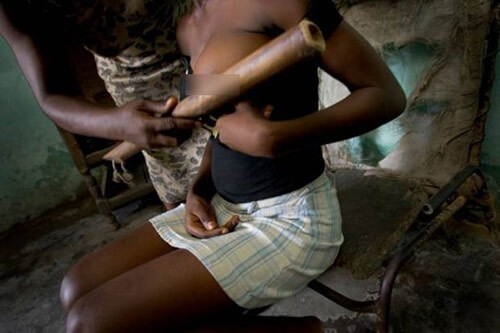 Là phụ nữ, bộ ngực phát triển là chuyện bình thường, thế nhưng đối với dân tộc ở Cameroon thuộc châu Phi, đây là một điều cấm kị. Những bé gái ở đây khi bắt đầu phát triển sẽ được chính những người thân của mình “hành xác”. Họ sẽ dùng những miếng sắt hay đá nung đỏ ép vào ngực những cô bé, nó sẽ tạo thành những vết sẹo bỏng xấu xí, và làm giảm sự phát triển của bộ ngực. Theo những người dân, họ nghĩ hành động này giúp con họ giảm ham muốn tình dục và có thể tránh thai, có người lại cho rằng nó sẽ giúp con họ tránh khỏi nhưng tên hiếp dâm. Hủ tục kinh dị này khiến cho các bé gái không chỉ chịu nỗi đau về thể xác mà còn ám ảnh tinh thần suốt đời. Hủ tục này phản ánh nhận thức thiếu khoa học và suy nghĩ của người dân, cũng như là một hồi chuông phản ánh nạn hiếp dâm trẻ em ở châu Phi.