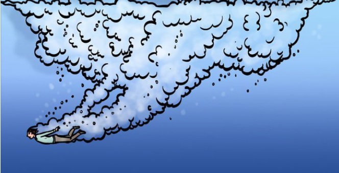 - Khi chạm nước ở phía dưới, bạn hãy nhanh chóng bơi ra chỗ khác