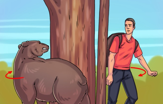 Gấu là một động vật có trọng lượng lớn nhưng lại chạy rất chanh. Nhưng có điều bạn hãy ghi nhớ đó là nếu chạy quanh một vật nào đó, gấu sẽ chạy chậm lại. Vì thế, nếu đi lạc vào rừng gặp con gấu dữ, bạn cũng không nên sợ hãi. Nếu nó không đuổi theo chỉ nhìn, bạn hãy đứng một chỗ. Nếu nó bước về phía bạn, bạn hãy lùi lại đằng sau. Còn nếu bị rượt đuổi từ phía sau, bạn hãy chạy vòng quanh.