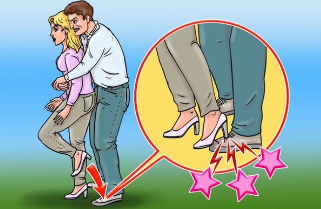 Trong đêm tối, nếu như bạn đi một mình và phát hiện bị tấn công từ phía sau. Chắc chắn trong tình huống này bạn sẽ cảm thấy sợ hãi. Nhưng nếu ai đó ôm cổ bạn từ phía sau, đe dọa, bạn hãy giẫm vào chân của kẻ tấn công. Bạn hãy dồn toàn lực để giẫm lên ngón chân để nó nứt gãy và kẻ xấu sẽ khó truy đuổi theo bạn.