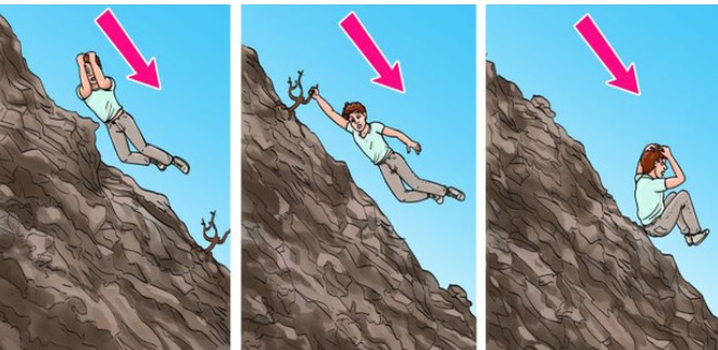Tình huống này có thể xảy ra khi chúng ta đi vào rừng. Nếu chẳng may rơi xuống vực, bạn hãy lấy tay ôm gáy, đầu. Nếu có vật gì đó có thể bám được, bạn hãy cố bám thật chặt. Bằng cách chia nhỏ những cú rơi, bạn sẽ có cơ hội sống sót khi rơi xuống vực sâu thăm thẳm.
