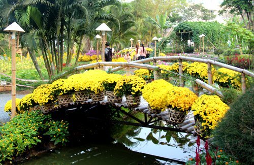 Khi ngày hội hoa xuân chính thức mở cửa, du khách hào hứng ghi lại những khung ảnh đẹp, chụp hình kỉ niệm cùng người thân, bạn bè trong khung cảnh ngàn sắc hoa tươi thắm khoe sắc. Không chỉ có các loại hoa được trồng trong nước mà còn nhập khẩu và trồng những loại đào Nhật Bản, hoa mai tứ quý…có nguồn gốc từ nước bạn. Ngoài ra, các nghệ nhân còn đem đến hội hoa xuân những tác phẩm xuất sắc của mình như: tác phẩm nghệ thuật Long – Lân – Quy – Phụng kết bằng trái cây, mô hình linh vật tượng trưng của năm Đinh Dậu là những chú gà đẻ trứng vàng…