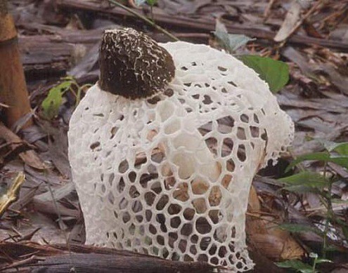 Nấm Tâm Trúc hay còn gọi là nấm nữ hoàng, có tên khoa học là Dictyophora indusiata. Nấm thường mọc tự nhiên trong đất, khi còn nhỏ, đầu trên nấm là một hình chóp màu đen hoặc nâu đậm, có một lớp nhầy bao phủ. Khi nấm trưởng thành, phần chóp nấm nở bung ra một lớp giống như những mắt lưới đan vào nhau, có màu vàng hoặc trắng, bao phủ từ đỉnh tới chân nấm. Lớp lưới này được ví như “tấm mạng che mặt” của những mỹ nhân chốn cung đình xưa. Vì thế, hình dạng và màu sắc nấm trông lộng lẫy và kiêu sa hơn hẳn so với các loại nấm thông thường khác. Đó cũng là lý do vì sao nấm còn được gọi là nấm nữ hoàng.