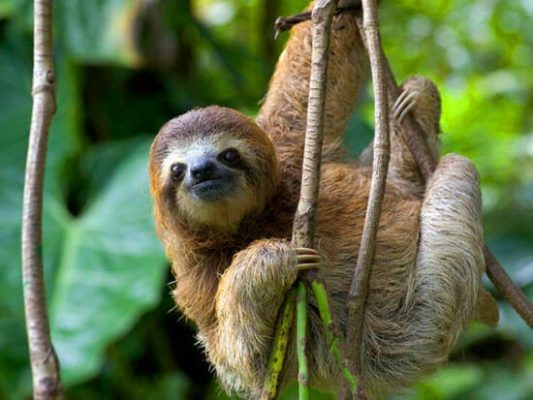 Và cuối cùng là một loài vật chỉ cần nghe tên thôi cũng thấy nó là một loài vật lười biếng nhất thế giới rồi, chẳng ai khác ngoài con lười. Loài vật này thường thấy ở khu vực rừng rậm Nam Mỹ, hay những khu vực có giống cây Cecropialytatiloba mọc. Bộ lông của con lười trông rất ngộ, nó dài và bện lại thành từng nhúm. Sở dĩ người ta nói nó là loài vật lười nhất thế giới bởi nó còn đi chậm hơn cả một con rùa, chỉ khoảng 3 cm cho mỗi giây, mà nó cũng ít di chuyển nữa. Nó thường treo mình trên cây không động đậy hàng giờ liền, và đôi khi cả tháng chúng mới kiếm ăn một lần, vì chúng không cần tiêu hao năng lượng. Và đôi lúc bạn sẽ thấy con lười có màu lông nâu nhạt xen lẫn với màu xanh, nhưng màu xanh ấy không phải màu lông của lười đâu, mà là do bị rêu bám. 😆