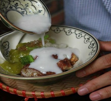Chè nhãn lồng hạt sen là món ăn dưỡng tâm, vô cùng bổ dưỡng, thích hợp để giải nhiệt trong mùa hè. Nhãn lồng hạt sen vốn dĩ là một món chè cầu kỳ từ đất Huế, trở nên phổ biến ở nhiều vùng khác nhau, và cũng là món chè ngon ở Hà Nội không thể bỏ qua. Món chè này phải được làm bằng sen tươi, nhãn thì chọn loại có cùi ráo, trắng trong và ngọt lịm. Vị sen tươi và nhãn thanh ngọt lịm hòa quện tạo nên món chè vừa dân dã vừa thanh tao. Ở Hà Nội, chè nhãn lồng hạt sen là món chè nhất định phải thử, sẽ khiến bất kỳ ai khi ăn cũng mê mẩn. Bạn có thể thưởng thức chè nhãn lồng hạt sen ở hàng chè 93 Hàng Bạc, 1A Bát Đàn, số 4 Hàng Cân… với giá 20 nghìn đồng một bát.