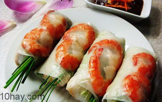 Nghe tên món gỏi cuốn, chắc chắn bạn liên tưởng đến cách trộn rau củ với nước mắm chua ngọt nhưng không phải vậy. Chúng ta sử dụng đa dạng nguyên liệu như cách làm gỏi nhưng thưởng thức bằng cách cuốn rau xà lách, hẹ xanh, tôm thịt, bún sợi nhỏ với bánh tráng mỏng thành từng cuốn tròn có con tôm đỏ au bên trong. Món gỏi cuốn chấm kèm tương bắc xào thơm pha đậu phộng rang chín, giã nhỏ thơm thơm, ớt sa tế cay cay.