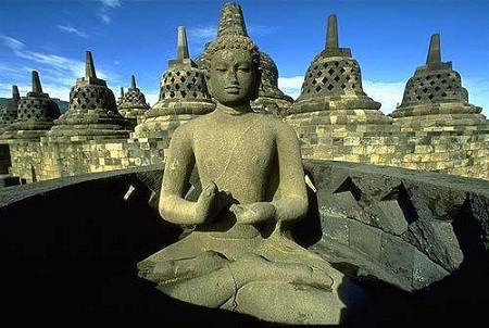 Đây là một kỳ quan Phật giáo tinh xảo và lớn nhất trên thế giới, xây dựng vào thế kỷ thứ 8 và thứ 9 của vương triều Sailendra. Toàn bộ công trình cao 43m, gồm có 5 tầng thềm hình vuông, 3 tầng thềm hình tròn và phía trên cùng là một bảo tháp lớn được tạc bằng khoảng 2 triệu khối đá núi lửa màu xám khai thác trên đảo Java. Chùa Borobudur được UNESCO công nhận là di sản văn hóa thế giới vào năm 1991.