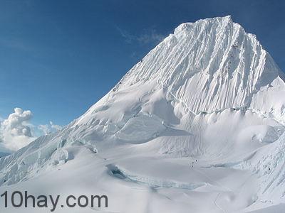 Đứng thứ 10 trong những ngọn núi đẹp nhất trên thế giới là Alpamayo thuộc Peru. Núi có dốc đi lên khá thẳng. Nét độc đáo của núi là hình dáng núi giống như một kim tự tháp nước đá. Trong một cuộc khảo sát năm 1966 bởi tạp chí Đức Alpinismus, Alpamayo là một trong 5 ngọn núi đẹp nhất trên thế giới.