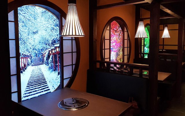 Phong cách nhà hàng đậm chất Nhật Bản, có vách ngăn các gian bằng gỗ, tông nâu đen trầm ấm; Rồi là có đèn lồng giấy, tranh thư pháp tạo cảm giác ấm cúng, và cả tiếng nhạc du dương rất êm tai. Đặc biệt hơn cả là có hệ thống hút khói hiện đại, thực khách sẽ an tâm hơn sau khi thưởng thức menu nướng ngon miệng.