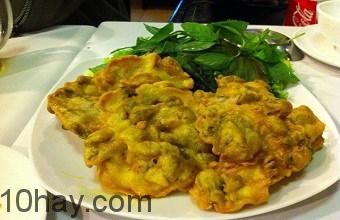 Là một trong những quán ăn lạ mà ngon, Hàu được tách vỏ trộn với trứng rồi chiên trên lửa lớn sao cho hàu vừa chín tới còn trứng thì hơi cháy xém cạnh bốc lên hương thơm khó cưỡng. Lớp vỏ bên ngoài giòn tan của miếng hàu chiên là vị ngọt mềm của những con hàu sữa ăn kèm cùng cùng chén nước mắm pha chua ngọt ấy vậy thôi mà dễ ghiền lắm nghen.
