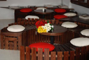 Không gian trong quán yên bình đến mức bạn có thể ung dung ngồi dài trên ghế. Tay ôm chiếc gối nhỏ xinh, ngắm dây leo đưa nhẹ theo làn gió, ngâm nga lời một bài hát có giai điệu ngọt ngào hay mơ màng trong tình tiết lãng mạn của của những tác phẩm hay trên kệ sách.
