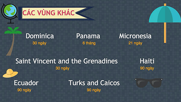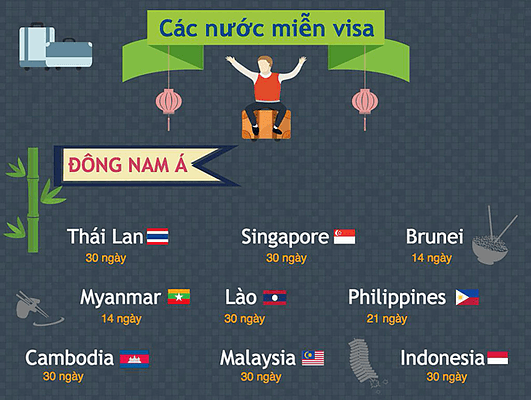 Trên đây là top 10 quốc gia nổi bật nhất, và gần gũi với Việt Nam, bạn nên dành thời gian thu xếp đến du lịch ít nhất một lần trong đời. Ngoài ra, còn rất nhiều quốc gia bạn có thể đi du lịch mà không cần Visa, dưới đây là một số thông tin tóm tắt để các bạn tham khảo thêm: