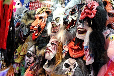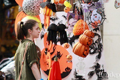Còn vài ngày nữa là tới lễ Halloween, các cửa hàng đồ chơi, quà lưu niệm đã nhộn nhịp bày biện các món đồ trang trí và hóa trang với nhiều hình thù kỳ dị. Các sản phẩm dành cho Halloween năm nay phong phú hơn với nhiều sản phẩm mới như bình bơm máu chảy lên mắt, mặt nạ quỷ bằng cao su, mặt nạ quái vật… Ngoài ra những mặt nạ với chất liệu bằng nhựa vẫn được lựa chọn vì giá cả phù hợp túi tiền các bạn trẻ.
