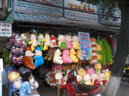 Nếu muốn mua một món quà bằng thú bông ý nghĩa cho bạn bè, người yêu thì bạn hãy đến cửa hàng gấu bông Thắm. Tại đây, bạn sẽ được thoải mái nhìn ngắm rất nhiều kiểu loại thú nhồi bông từ gấu nón, lợn, chó, vịt, ếch đến hình trái tim, ông già Noel với nhiều mức giá để bạn tha hồ lựa chọn.