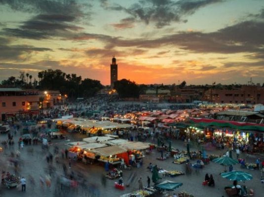 Tọa lạc ở phía Tây Nam Morocco. Marrakech nổi tiếng khắp thế giới nhờ lối kiến trúc cổ kính cùng nhiều địa danh có lịch sử lâu đời. Được UNESCO công nhận là di sản thế giới, quảng trường này không mang tính biểu tượng nhiều nhưng là một nơi rất nhộn nhịp, từ những người điều khiển rắn, các anh hề, và cả những kẻ bán thuốc lậu hoạt động công khai. Vào lúc hoàng hôn, 100 đầu bếp bắt đầu làm việc và những quầy nướng được bày ra tạo nên không gian quảng trường giống như một cuộc thi tiệc nướng. Khói bếp hòa quyện với mùi vị kebab đặc trưng.
