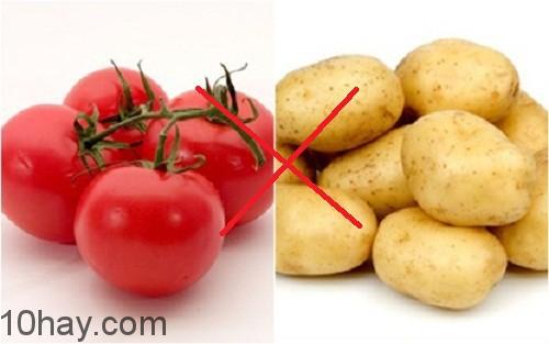 Hai loại thực phẩm kỵ nhau này sẽ làm cho ta đau bụng, tiêu chảy và rối loạn tiêu hóa nếu kết hợp chúng với nhau. Ở cà chua có nhiều chất pectin và nhựa phenolic nên khi chúng kết hợp với khoai tây trong dạ dày sẽ tạo thành chất gây hại cho cơ thể con người.
