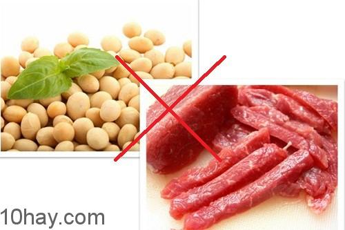Theo các chuyên gia dinh dưỡng, khi kết hợp đậu tương với thịt lợn, hàm lượng phốt pho trong đậu tương có khả năng làm giảm giá trị dinh dưỡng của thịt lợn, đặc biệt là khi thịt càng nạc. Đậu tương là một trong những thực phẩm giàu dinh dưỡng với 60 – 80% là phốt pho. Nguyên tố này rất thích hợp khi kết hợp với protein (trong trứng) tuy nhiên nếu kết hợp đậu tương với các thực phẩm như thịt lợn, thịt cá thì chúng lại có ảnh hưởng không có lợi tới những loại thực phẩm đó.
