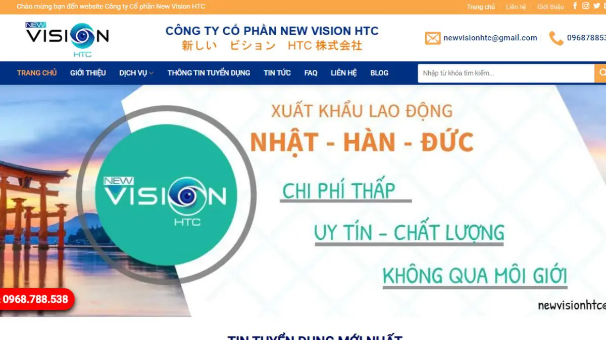 Công ty cổ phần New Vision HTC được thành lập và chính thức đi vào hoạt động ngày 27/04/2020. Là một doanh nghiệp trong lĩnh vực tư vấn du học và cung ứng nguồn nhân lực xuất khẩu lao động trên cả nước. Trong bối cảnh hiện nay, khi nhu cầu xuất khẩu lao động ngày càng tăng thì các công ty về dịch vụ môi giới cũng phát triển nhiều và đa dạng theo. Tuy nhiên cũng vì thế mà người lao động cân nhắc kỹ càng hơn và có nhiều sự lựa chọn hơn.