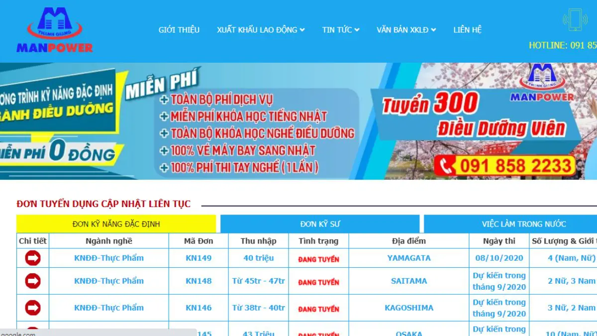 – Website công ty ít cập nhật nên cần phải liên hệ trực tiếp để biết thêm nhiều thông tin về thủ tục và các suất xklđ hiện tại.