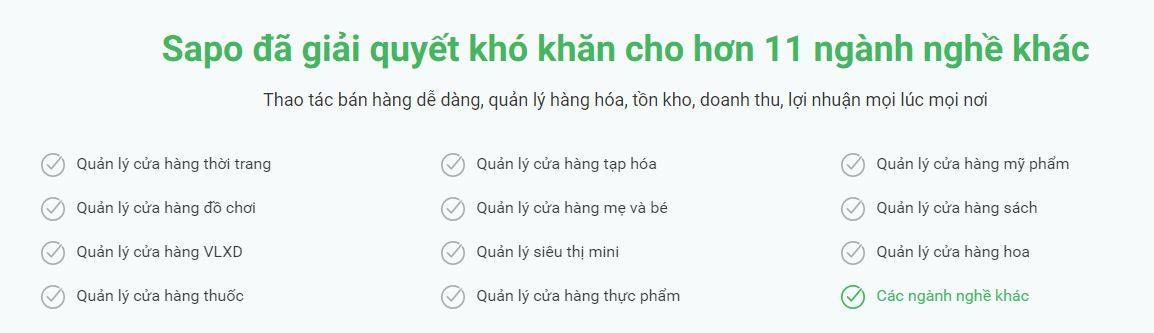 Phần mềm chuyên biệt cho từng ngành hàng: