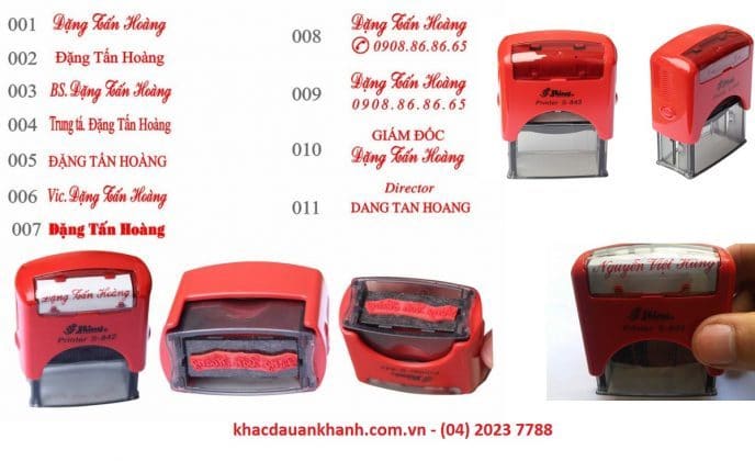 Công ty khắc dấu Thăng Long chuyên nhận khắc dấu tên doanh nghiệp, cá nhân… với giá thành rẻ nhất. Dịch vụ khắc dấu tên của chúng tôi đảm bảo khắc dấu tên nhanh chóng, rõ nét, đúng kiểu dáng và mẫu mã theo yêu cầu của khách hàng. Sản phẩm chính hãng Shiny, giao dấu tận nơi miễn phí trong Quận nội thành Hà Nội, bảo hành mặt dấu vĩnh viễn, đổ mực dấu miễn phí.