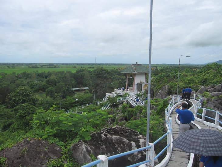 Bạn có thể leo lên ngọn đồi Tà Pạ để ngắm nhìn các cánh đồng xanh ngắt nơi đây. Từ vị trí này, để ngắm mặt hồ xanh phẳng lặng trên núi và để phóng tầm mắt xuống cánh đồng bạt ngàn dưới chân núi. Giữa cảnh núi non, cả cánh đồng thẳng tắp, điểm trong khung cảnh ấy là những cây thốt nốt vươn cao, che bóng mát cho người nông dân trong giờ ngơi nghỉ. dường như một bức tranh vẽ tuyệt đẹp do thiên nhiên ban tặng được thu vào tầm mắt bạn.