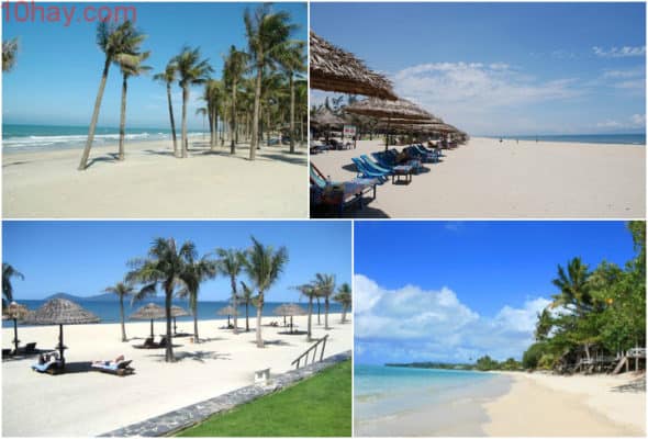 Bãi tắm An Bàng: Thuộc phường Cẩm An, thành phố Hội An. Quyến rũ du khách với làn nước trong xanh, triền cát mịn trải dài bên hàng phi lao rì rào theo gió, điểm tô những dải hoa muống biển khoe sắc tím mộng mơ dưới nắng vàng rực rỡ, thi thoảng lại bắt gặp những bông hoa lông chông lăn tròn trên cát, chạm mặt nước, rồi dập dềnh cùng sóng biển…