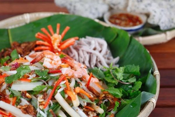 Thành phần chính của món gỏi này là hoa chuối, thịt heo, tôm và đâu phộng rang. Gỏi chuối luôn thu hút khá nhiều thực khách bản địa bởi hương vị dân quê gần gũi. Nếu bạn muốn thay đổi khẩu vị bằng những món ăn quen thuộc, thơm ngon thì đây là sự lựa chọn phù hợp. Địa chỉ gợi ý là quán trên đường Hải Phòng, giá 30.000 đồng một đĩa.
