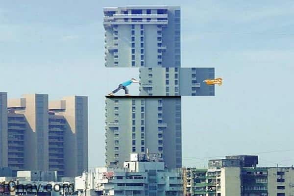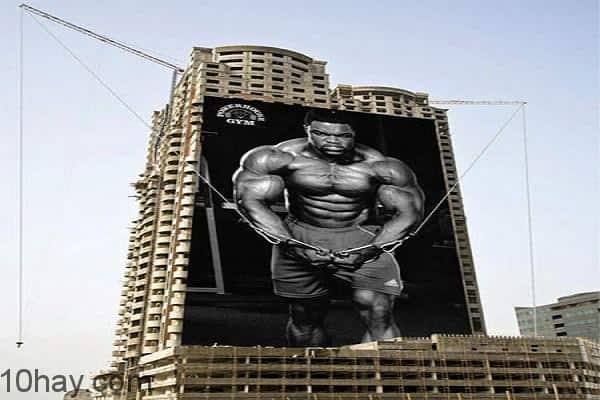Nhìn vào hình ảnh quảng cáo này, bạn đang thấy một người đàn ông vạm vỡ đang nâng cả tòa nhà rất nặng ở một công trường xây dựng. Nếu bạn muốn có một cơ thể và sức khỏe như vậy, hãy đến phòng tập thể hình Powerhouse, và đây chính là một trong những poster quảng cáo độc đáo rất sáng tạo của họ.
