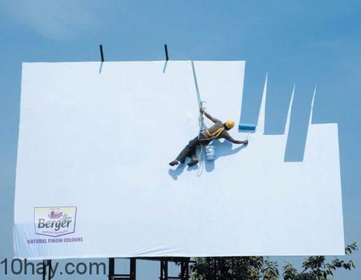 Nếu chú ý kỹ, ta sẽ thấy màu xanh mà hãng sơn Berger chọn làm màu chủ đạo trong tấm biển quảng cáo này trùng lặp với màu xanh của bầu trời.