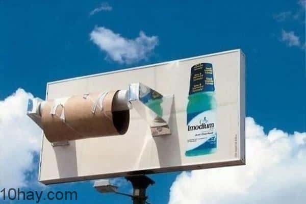 Tấm quảng cáo sử dụng lõi giấy vệ sinh phóng to này chính là một chiêu thức độc đáo của thuốc nhuận tràng Imodium.