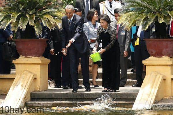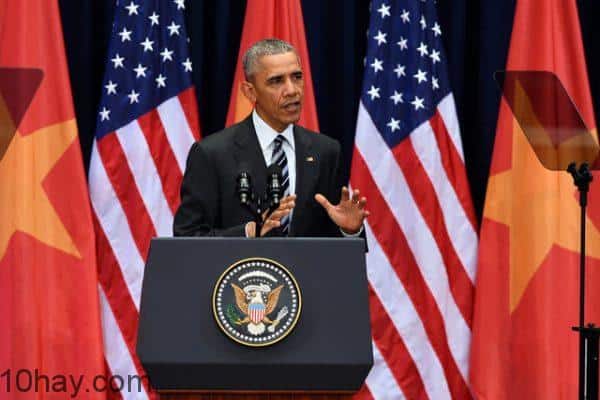 Tối ngày 22/5, tổng thống Mỹ- Barack Obama đặt chân xuống phi trường Nội Bài trong niềm hân hoan vỡ òa của toàn thể nhân dân Việt Nam. Chuyến thăm chính thức tại Việt Nam trong 3 ngày của vị tổng thống tài năng- Obama tuy ngắn ngủi nhưng những hành động ấn tượng của ông ghi dấu tại đất nước nhỏ bé Việt Nam chúng ta chỉ có thể dùng một câu: “Tuyệt vời! Tổng thống Obama không thể tuyệt vời hơn!”. Ngoài nội dung tuyên bố dỡ bỏ lệnh cấm vận vũ khí sát thương với Việt Nam, ông Obama bày tỏ sự hỗ trợ của Mỹ đến nền kinh tế, giáo dục, hàng hải nhằm thúc đẩy mối quan hệ hữu nghị hợp tác của hai nước, ông còn thể hiện sự thân thiện hết đỗi gần gũi của mình đối với người dân và văn hóa Việt Nam. Hòa cùng không khí vui tươi chào đón Obama đến với nước mình, 10Hay.com xin được chia sẻ cùng các bạn những hoạt động vô cùng gần gũi và ấn tượng của tổng thống Obama khi đến Việt Nam để cùng ghi nhớ mãi ấn tượng khó quên này.