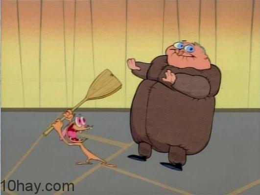 Nhân vật hoạt hình tiếp theo là Ren, một chú chó săn bị mắc bệnh hen suyễn và thường “không kiểm soát được bản thân”, gây nên những hành động bạo lực quá mức. Ren & Stimpy là một trong những phim hoạt hình dành cho trẻ em tuy nhiên lại chèn vào nhiều tình huống gây cười nhưng với hành động bạo lực quá mức buộc cơ quan kiểm duyệt phải làm việc lại. Vượt quá giới hạn hài hước của nó là một tập phim có miêu tả cảnh Ren đánh đập dã man các nhân vật khác với một mái chèo.