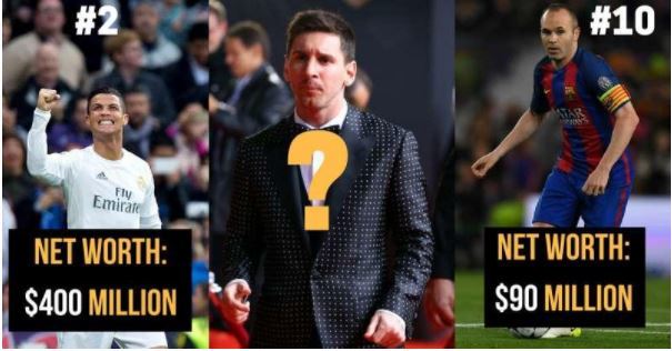 Là cầu thủ duy nhất từng giành được 5 lần Quả bóng vàng, mức lương của Messi là khoảng 330.000 bảng/tuần sau thuế, ít hơn Ronaldo 30.000 bảng. Tuy nhiên, Messi kiếm được hơn 20 triệu đô mỗi năm từ các nhà tài trợ gồm Adidas, Audemars Piquet, PepsiCo, Gillette, Turkish Airlines và Electronic Arts. Anh ấy có thể không hào nhoáng như Cristiano Ronaldo nhưng những màn biểu diễn trên sân và lối sống không ồn ào đã làm Messi trở nên đáng tin cậy và có tính thị trường cao hơn.