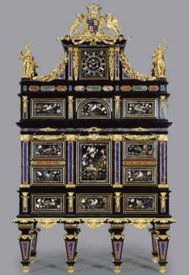 Chiếc tủ được làm từ đá quý này là một trong những cổ vật đắt nhất thế giới. Hoàng tử Lienchtenstein là người đã từng sở hữu nó. Hiện tại, chiếc tủ có niên đại từ thế kỳ 18 này đang được trưng bày ở bảo tàng Liechtenstein.