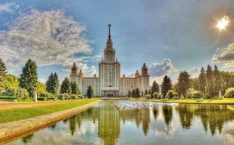 Tòa nhà chính của Đại học Tổng hợp Quốc gia Moskva nằm trên đồi Chim sẻ, ở Moskva. Đây vốn là một trong 7 toà nhà chọc trời được xây dưới thời Stalin. Đại học Tổng hợp Quốc gia Moskva được đánh giá là cơ sở giáo dục đẹp nhất nước Nga, với sự hài hòa của cỏ cây, hoa lá và sông nước tuyệt đẹp. Nơi đây cũng được biết đến như một điểm du lịch hấp dẫn các du khách từ khắp các nơi trên thế giới.